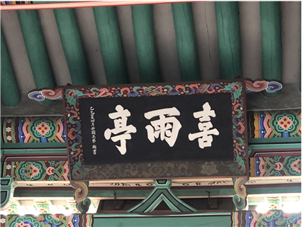 임금은 모화루 서편에 말을 세우고 격구를 구경한 뒤, 효령 대군 이보의 별장으로 갔다. 강 언덕 정자에 앉아 군사들이 포를 쏘고 말 타고 활 쏘는 모습을 관람하고 술잔치를 베풀었다. (중략) 이날 임금은 홍제원, 양철원에서 영서역 갈두 들판까지 말을 타고 천천히 거동했다. 거동하는 길가에 밀과 보리가 무성하게 자란 것을 보고 임금은 몹시 기뻤다. 정자에서 막 잔치를 벌이려는데, 마침 큰비가 좍좍 내려서 잠깐 사이에 네 들에 물이 흡족했다. 임금은 매우 기뻐하며 정자 이름을 희우정(喜雨亭)이라고 지었다. (<세종실록>, 세종 7년 5월 13일)